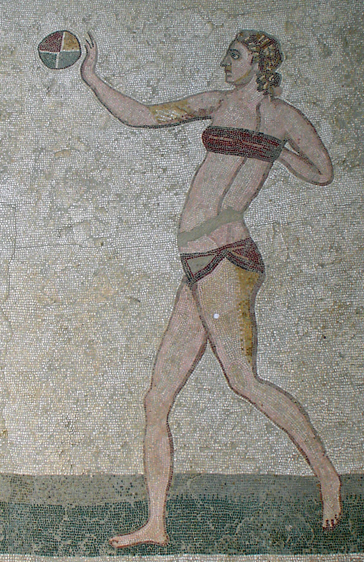 There is a famous ruin in Sicily called I Mosaici (“the mosaics”);  it is the remarkably preserved ruins of a palace built before the time of Christ, the floors of its rooms inlaid with intricate mosaics depicting the life of the palace denizens.  One of the floors, that of a Roman bath, depicts a woman holding a multicolored ball, a sphere of brightly colored wedges exactly like a modern mosaic beach ballbeach ball – but in scene more than a thousand years old!
